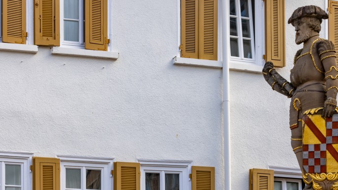 Anfang des 16. Jahrhundert erhielten die Bürger von Markgraf Phillip dem II die Erlaubnis, einen herrschaftlichen Brunnen auf dem Marktplatz zu errichten. Dargestellt ist ein Schildhalter mit badischen Wappen, schließlich gehörte Besigheim bis 1595 zum badischen Herrschaftsgebiet.
