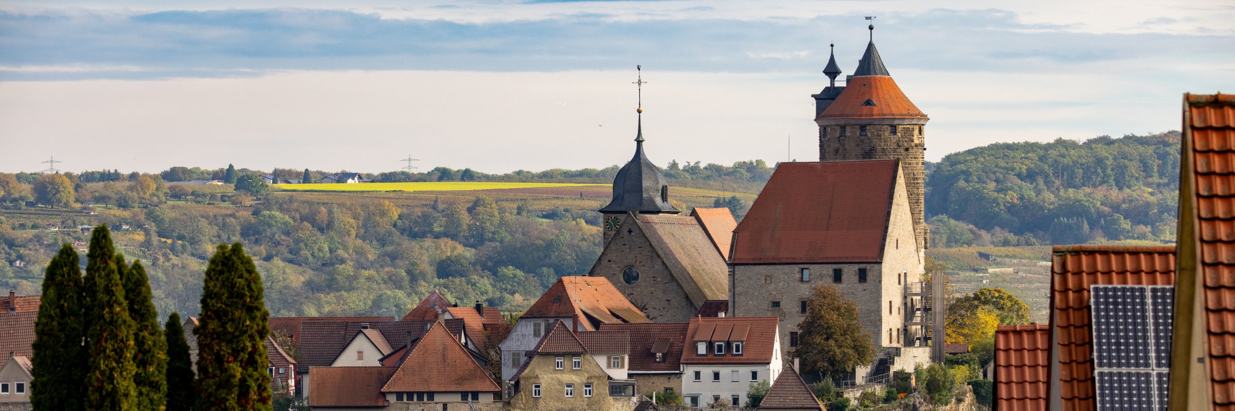 Der Schochenturm wurde, wie auch der Waldhornturm, um 1220 erbaut. Der Turm ist 31 Meter hoch und hat seinen Zugang im zweiten von insgesamt 5 Gewölben. 1312 versteckte sich Graf Eberhard der Erlauchte von Württemberg in diesem Turm. Den Namen Schochenturm hat der Turm von einem ehemaligen Turmwärter Namens Schoch erhalten.