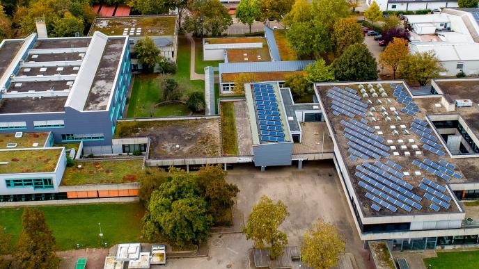 Eine gute räumliche und technische Ausstattung mit zwei Computerräumen, zwei NWT-Räumen, einer ganzflächigen WLAN-Abdeckung, mehreren Laptop- und iPad-Klassensätzen sowie Dokumentenkameras, Apple TVs und Beamern in jedem Klassenzimmer. Über das Digitale Schwarze Brett und die DSB-App kommen Informationen zum Unterrichtsbetrieb schnell bei allen an.