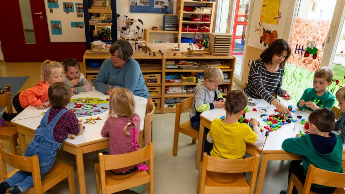 - Altersgemischte Gruppen, dies bietet die Chance, dass jedes Kind in diesem Gefüge seinen Platz und sein individuelles Entwicklungstempo finden kann;