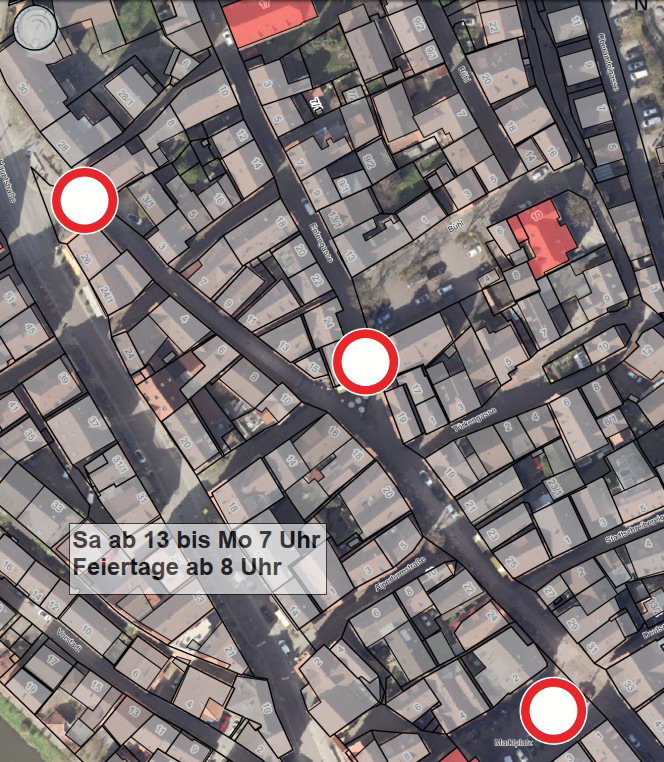 Die Verkehrsführung wird während dieser Zeit geändert. Die Kirchstraße ist ab dem Eiscafé Bataja und die Entengasse ab Abzweigung Bühl für den KFZ-Verkehr gesperrt.